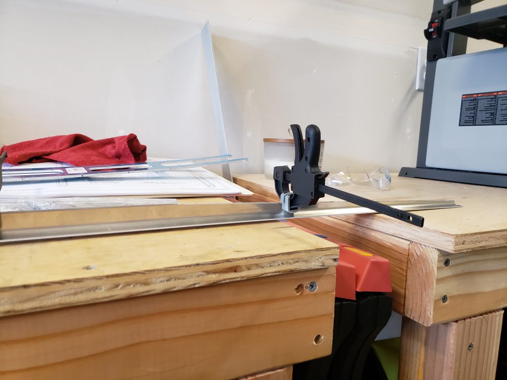 So looking at the plans, the first thing you do is cut the vertical stabilizer rear spar caps using dimensions provided. Basically you’re cutting a taper toward the end of two pieces of radius bent aluminum. Van’s really wastes no time with the, “don’t screw this up or you’ll have to order a new part” type operations. But I figure I have a band saw, this is something I can actually do now. So after measuring, and remeasuring, and then getting a finer point Sharpie and remeasuring, I drew a straight line and made my cut. Not the cleanest or straightest cut in the world but at least I left myself some margin to clean it up.