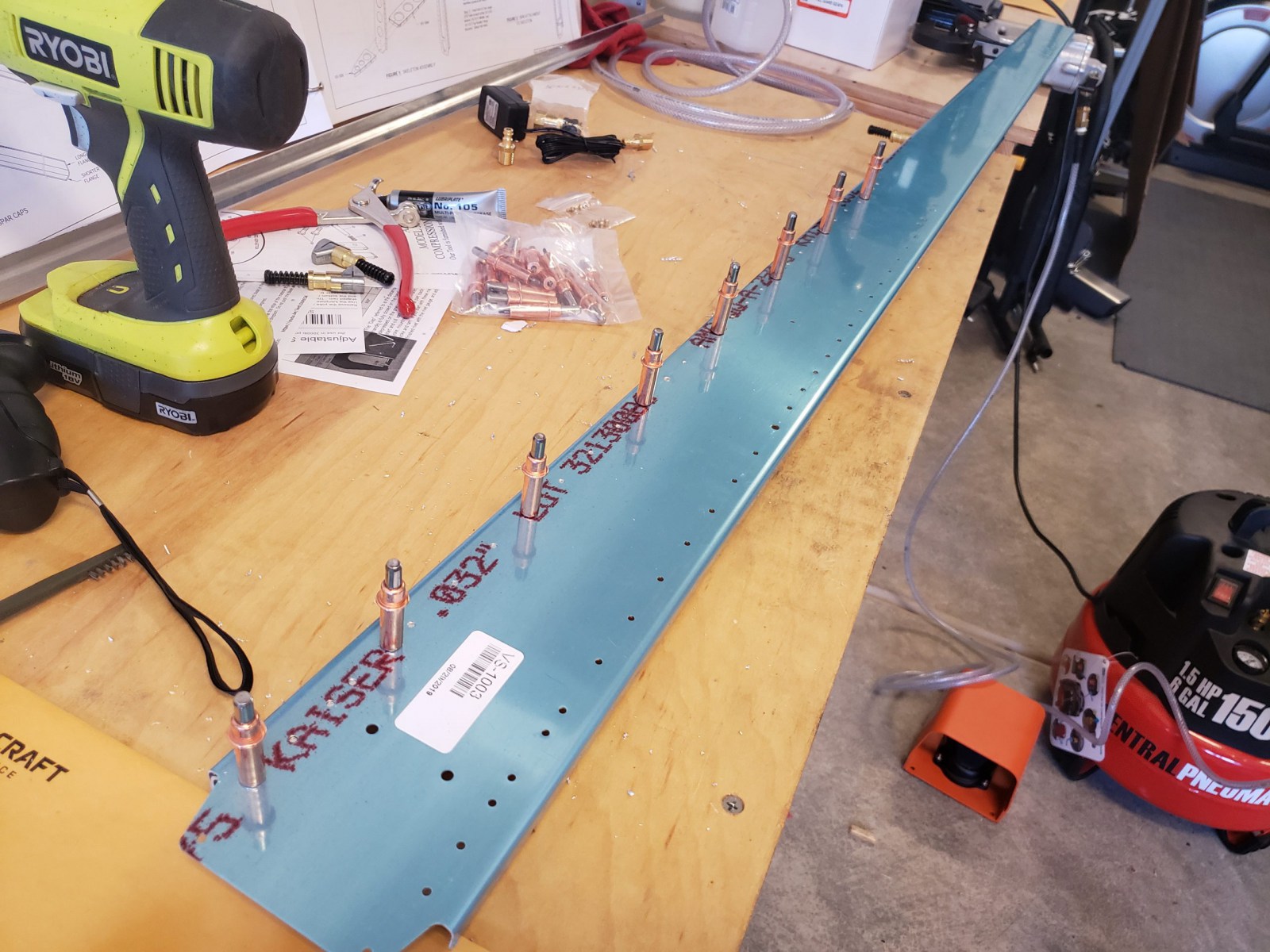 Finally, Robin and Lee came over on Saturday. Lee bought the toolbox practice kit from Van’s and we were both itching to put that together and get to building more on the airplane. Unfortunately, the toolbox requires 3/32 clecos, which have shipped but haven’t arrived yet. So Lee and I worked on getting all the parts for the next few steps deburred, the rest of the rear spar holes match drilled (the ones that take a 3/16 drill at least), and then got the garage organized. It was super nice to have help with getting things organized.
